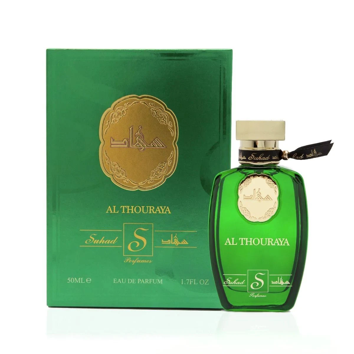 Al-Thouraya von Suhad Perfumes ist ein orientalisch-hölziger Duft für Damen und Herren. 2014 lanciert, wurde diese Komposition von Christian Carbonnel und Suhad Al-Qenaei entwickelt. Die Kopfnote entfaltet Gewürze, Nelken und Muskatnuss; das Herz zeigt Leder, holzige Noten und Amber; während die Basisnote die Duftpyramide mit Patchouli, Sandelholz, Vanille und Moschus abschließt.