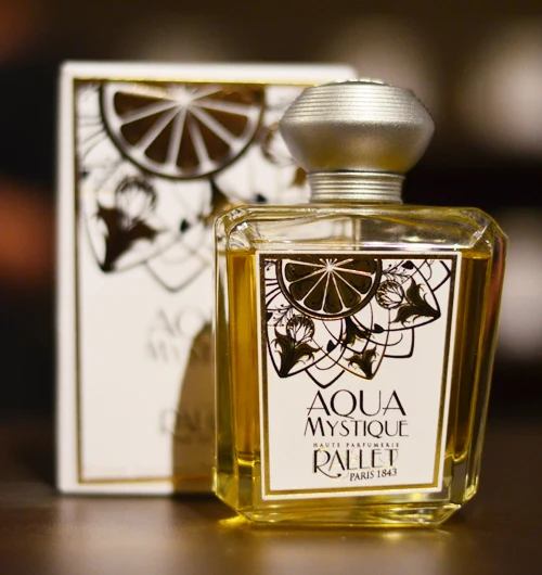 Aqua Mystique von Rallet ist ein almoschieriger, blumiger, holziger Duft für Damen. 2013 eingeführt, wurde die Komposition von Corinne Cachen entwickelt. Die Kopfnote entfaltet Mandarine, Bitterorange, Zitrone, Bergamotte, Neroli und Kardamom; das Herz zeigt Minze, Lavendel, Pfeffer, Elemi, Jasmin und Basilikum; während die Basisnote in einem holzigen Akkord mit weißem Moschus und Patchouli ruht.