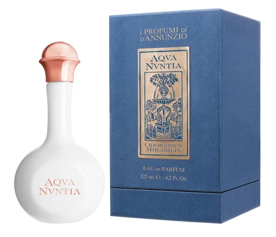 Aqva Nvntia von I Profumi di d'Annunzio ist eine orientalische florale Damenparfümkomposition. 2017 auf den Markt gebracht, wurde das Duftprofil von Maurizio Cerizza entwickelt. Die Kopfnote besteht aus Zitrusfrüchten und Neroli; die Herznote umfasst Minze, Orangenblüten, Lavendel, Rose und Jasmin; die Basisnote setzt sich aus Benzoe, weißem Moschus, Sandelholz, Amber und Patchouli zusammen.