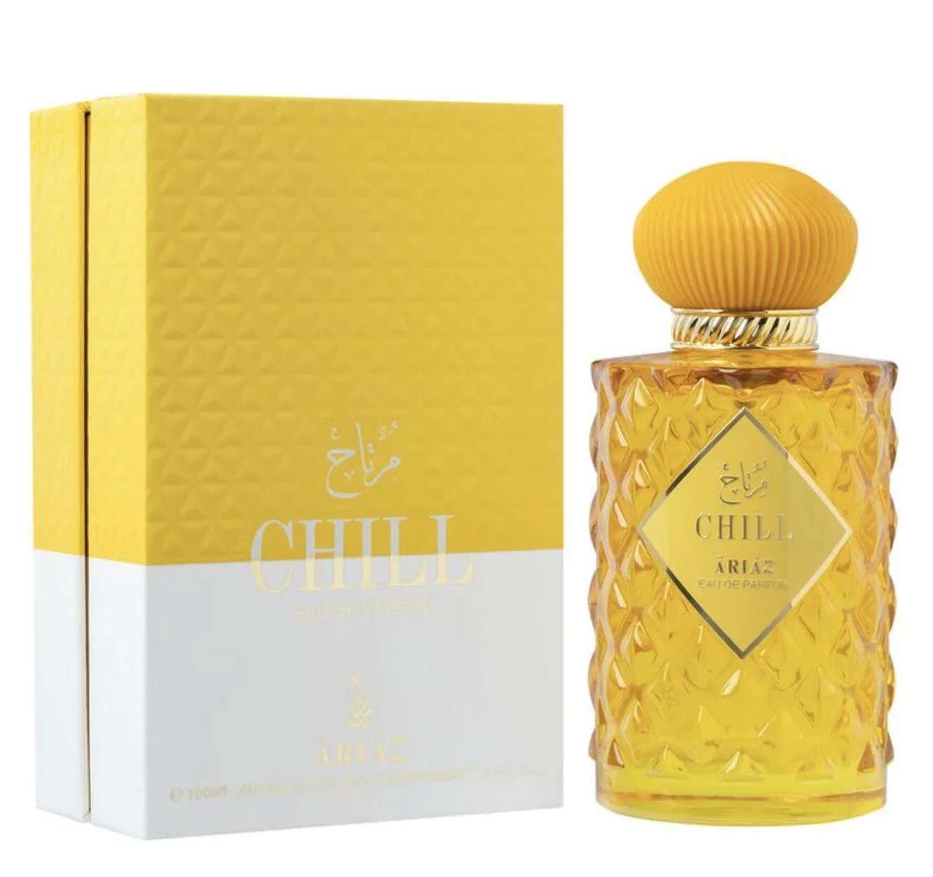 Chill von ÄRIÂZ ist ein Duft aus der weiblichen olfaktiven Familie. Diese 2025 präsentierte Neuheit erweitert die Kollektion. Die Duftpyramide entfaltet sich mit Frischfresie, Apfel, Nektarinenblüte und italienischem Zitronenöl in der Kopfnote; in der Herznote mit Marshmallow, Erdbeere, Kokos und Orangenblüte; sowie in der Basisnote mit Schlagsahne, Zucker, Vanille, Himbeere, Moschus und Ambroxan.