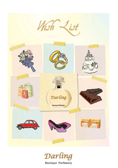 Darling von Boutique Perfumery ist ein florales aquatisches Damenparfum aus der Familie der floralen Düfte. 2010 lanciert, wurde diese Komposition von Supriya Jindal und Jean Claude Delville entwickelt. Die Duftstruktur entfaltet sich mit einer wasserfrischen Mandarinen-Kopfnote, einem Herz aus Pfirsich, Freesie und Magnolie sowie einer holzigen Basis mit Moschus.