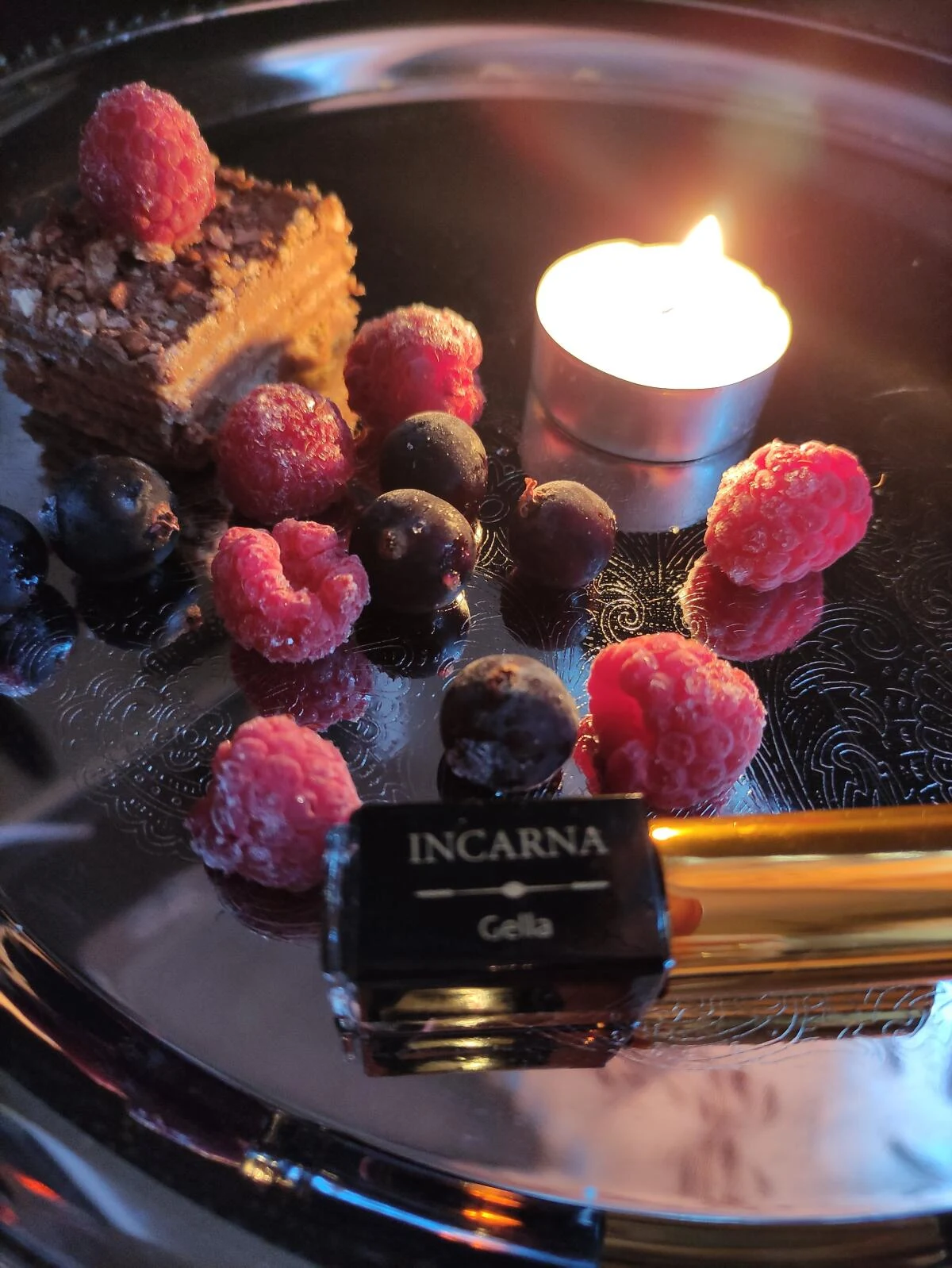 Gella von Incarna Parfums ist ein Duft aus der olfaktiven Familie der fruchtig-blumigen Gourmands für Damen. 2017 lancierte, wurde diese Komposition von der Parfumeuse Natalia Vitkovskaya kreiert. Die Kopfnote mit Cognac, französischen Pastetchen, Himbeere und schwarzen Johannisbeeren verströmt einen ersten süß-würzigen Eindruck. Das Herz der Komposition offenbart ein Gleichgewicht aus Tolubalsam, Sandelholz und Immergrün, das Wärme und Textur verleiht. Abschließend runden die Basisnoten aus Amber und Patchouli die Struktur mit einer eleganten, holzigen und beständigen Note ab.
