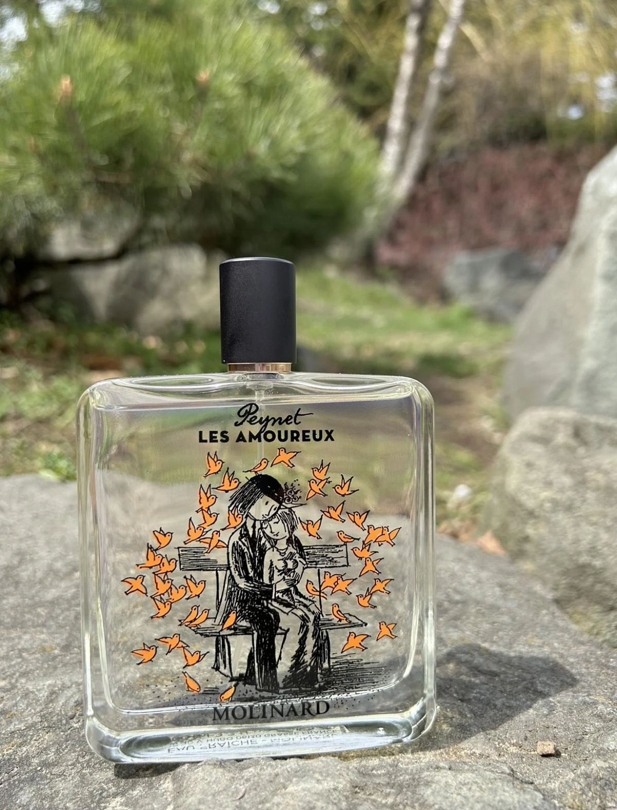 Les Amoureux de Peynet von Molinard ist ein zitrisch-aromatisches Duftwerk für Damen und Herren. 2017 auf den Markt gebracht, wurde diese Komposition vom Parfumeur Mathieu Nardin entwickelt. Die Kopfnote vereint Zedrat mit Zitronenmelisse, Lavendel, Bergamotte, Orange, Grapefruit und Mandarine. Das Herz des Duftes entfaltet sich mit Ingwer, Petitgrain, Muskatnuss und Jasmin, während die Basisnote auf Vetiver, holzige Nuancen, Amber und Moschus ruht.