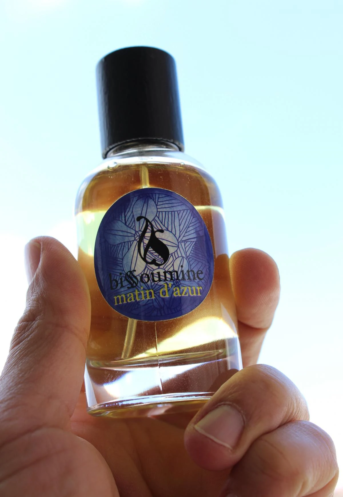 Matin d'Azur von Bissoumine ist ein zitrusartiges Duftwerk für Damen und Herren aus dem Jahr 2016. Die Komposition wurde von der Parfümeurin Kitty Shpirer entwickelt. Beim Auftragen entfalten sich auf der Kopfnote Zitrone, Bergamotte und Zitronenblätter; im Herzen harmonieren Osmanthus und weiße Pfirsiche; die Basisnote wird durch Guajakholz, Zedernholz und Wildleder abgerundet und rundet die Duftpyramide perfekt ab.