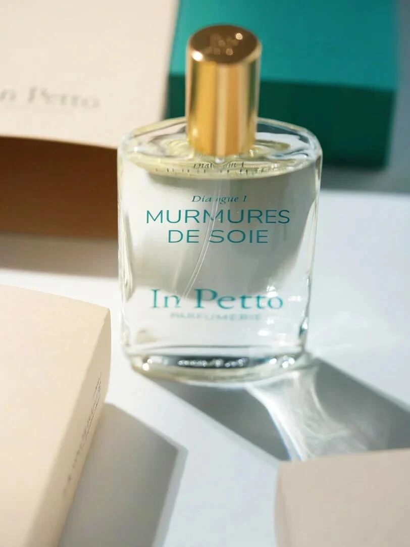 Murmures de Soie von In Petto ist ein Duft aus der olfaktiven Familie des floralen, muskigen Holzaromas für Damen und Herren. Diese Neuheit wurde im Jahr 2025 eingeführt. Die Kopfnoten bestehen aus Patchouli, Aldehyden und Kampher; die Herznoten aus Angelikawurzel, Geranie und Daphne; die Basisnoten aus Kaschmirholz, weißem Moschus und Mandel.