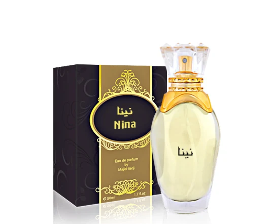 Nina von Majid Muzaffar Iterji ist ein zitrushaftes Gourmand-Duft für Frauen. Die Kopfnote besteht aus Zitrusfrüchten; die Herznoten verbinden Apfel mit dunkler Schokolade; die Basisnoten offenbaren weißen Moschus, Vanille und Zedernnadeln.
